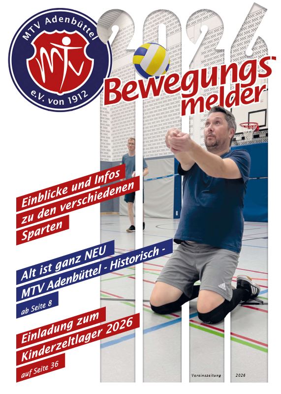 „Menschen im Sport vereinen“ ist unser Slogan und dieser wird im Verein gelebt. Es gibt keinen besseren Nachweis dafür als unsere MTV-Vereinszeitschrift, den Adenbütteler Bewegungsmelder. Diesen brachten Melanie Kracht und Thomas Reckewell in enger Zusammenarbeit mit den Sparten des Vereins letztes Jahr erstmals heraus, zu der Mitgliederversammlung am 07.02.2026 haben sie nun die neue Version für 2026 fertiggestellt und veröffentlicht, die ihr unter Downloads hier herunterladen und lesen könnt.