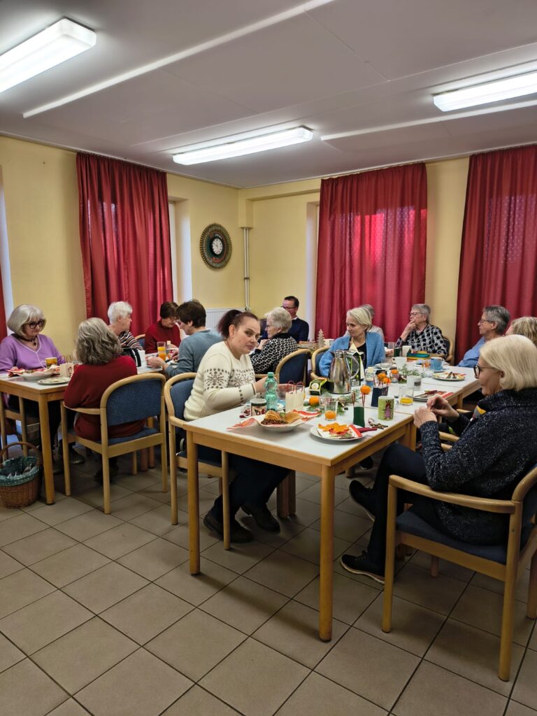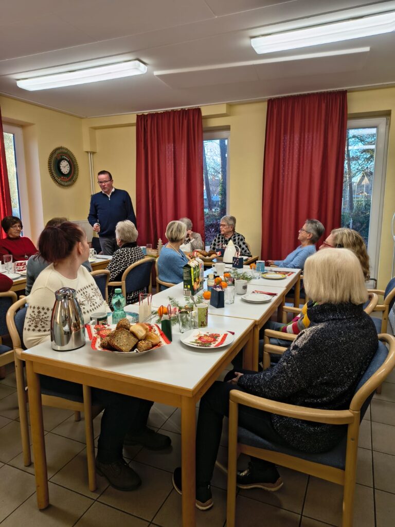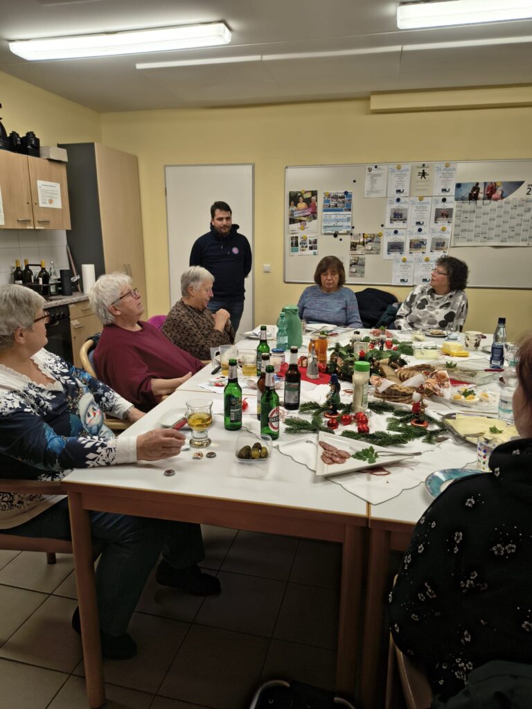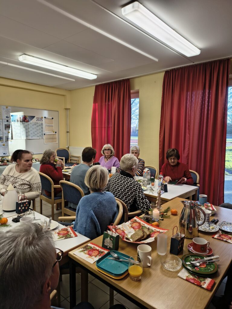 Zwischen Getränken und dem Essen richteten Sonja Müller und Geschäftsführer Michael Horst die Grüße des Vorstands aus, überreichten die kleinen Präsente und wünschten frohe Weihnachten und einen guten Rutsch in ein gesundes 2026 mit weiterhin viel Spaß an der Hockergymnastik.