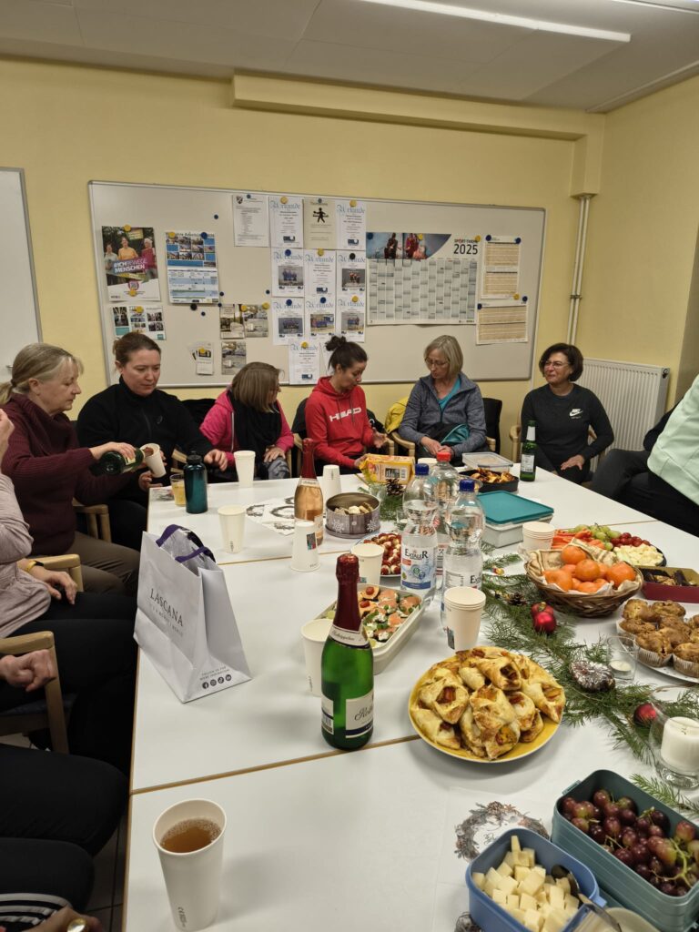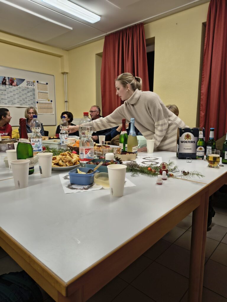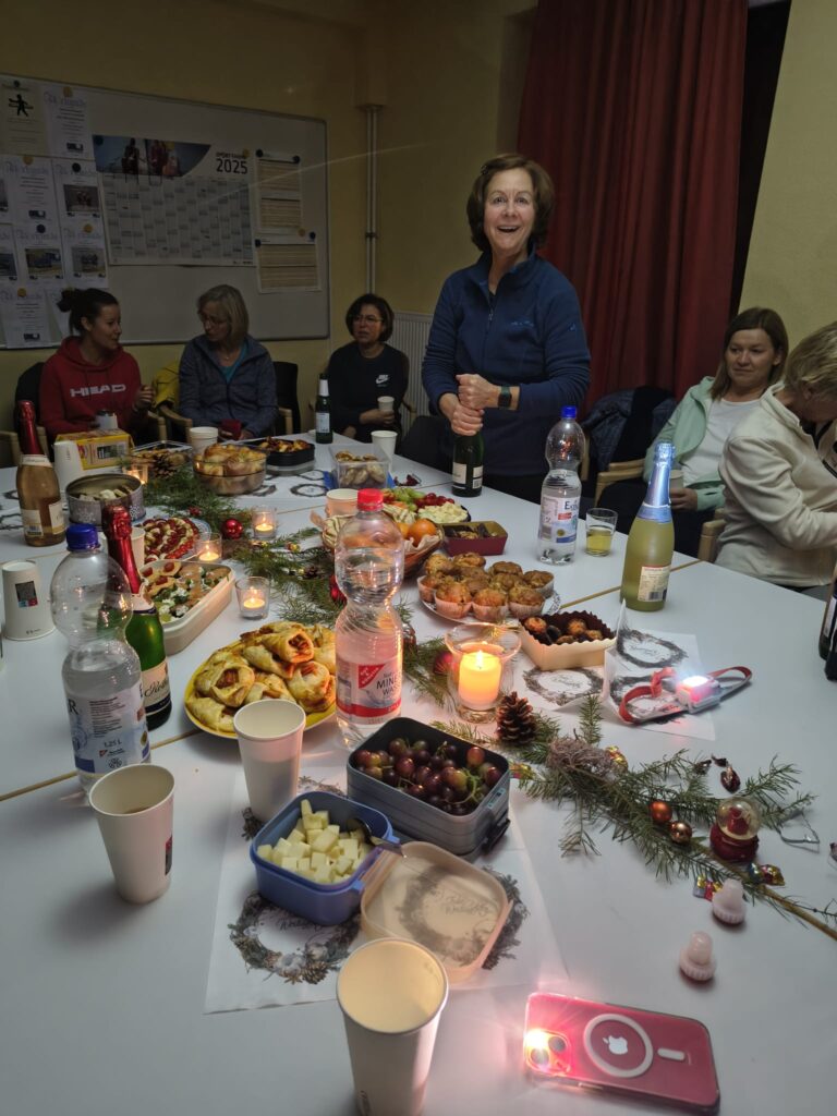 Es begann mit der Weihnachtsfeier der Fitness Gymnastik Damen von Übungsleiterin Heike Behrens am Mittwoch, den 10.12.2025 um 17.30 Uhr, die im ZBV-Raum der Sporthalle stattfand und die Sonja Müller und der 2. Vorsitzende Lucas Munzel besuchten. Bei ein paar Getränken und etwas zu Essen saßen die Damen in gemütlicher Runde zusammen und läuteten die Weihnachtszeit ein. Sonja und Lucas richteten die Grußworte aus und überreichten die kleinen Geschenke. Die Stimmung war sehr harmonisch und die Damen glücklich. Wir wünschen der Gruppe weiterhin viel Freude beim Gymnastiksport.